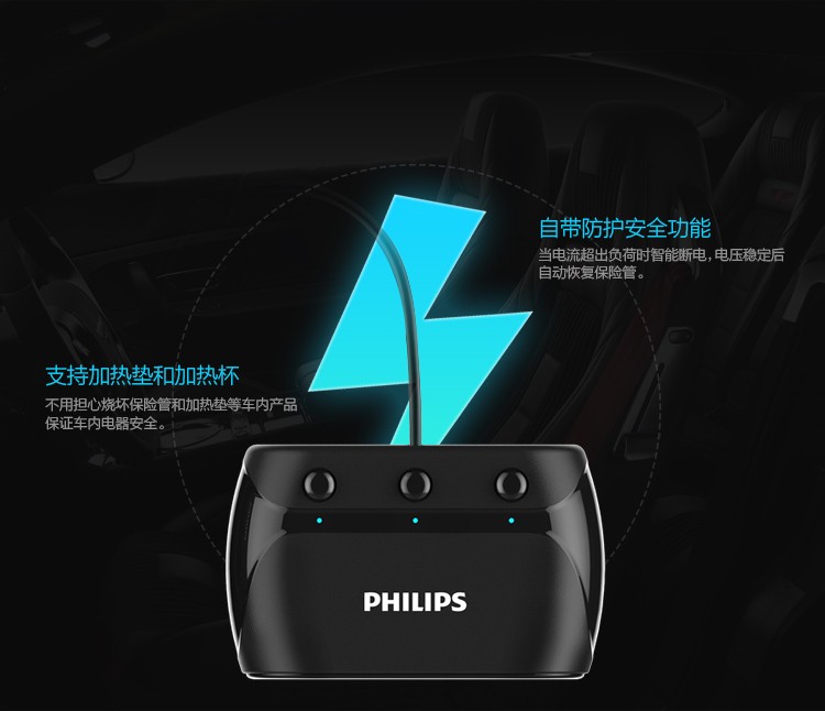 フィリップスの車載充電器ヘッドシガラターは、4つのLEDスクリーンで電圧監視単USB口+3つの拡張口車の充電ヘッド互換性のあるアップル/ファーウェイ/小米【1牽引4】DLPP 019