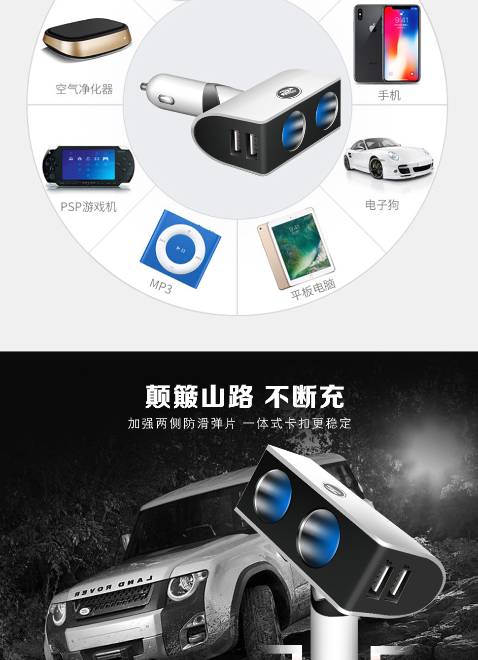 全体的に満足して充電問題を解決しました。2台の携帯を同時に充電してもいいです。ドライブレコーダーを差し込むのに邪魔になりません。