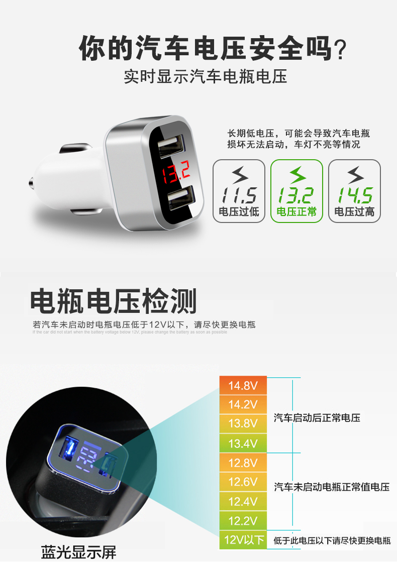 自動車の快速充電器多機能車の中で5 Aは小型車を12 V 24ボルト充電します。USBアダプターGQ合金のデジタルモデル【宝石藍】は携帯電話のサポートを送ります。