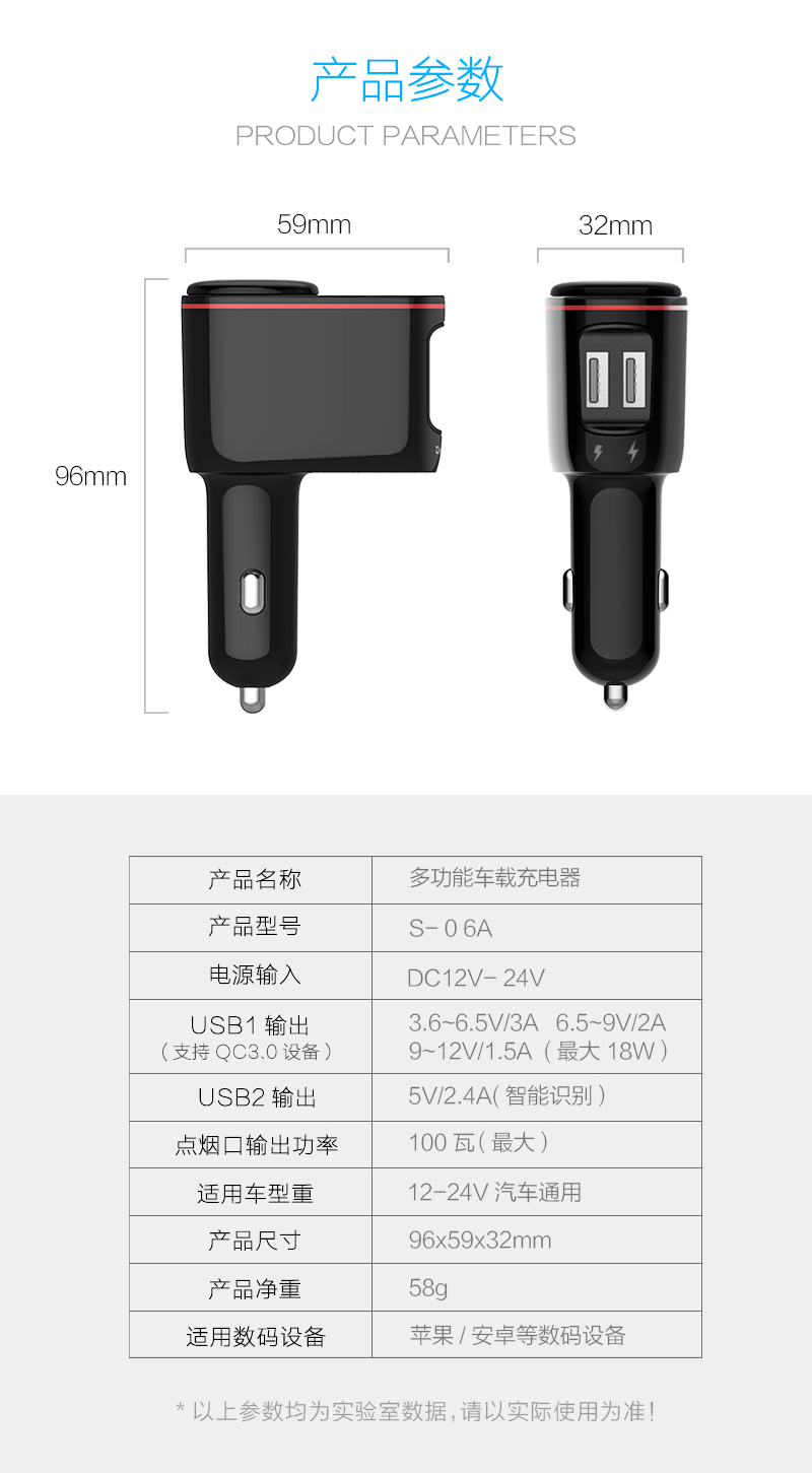 ニューマンNewmine車載充電器車充電シガラター三USB牽引二点煙拡張器知能電圧検出黒S-06 A