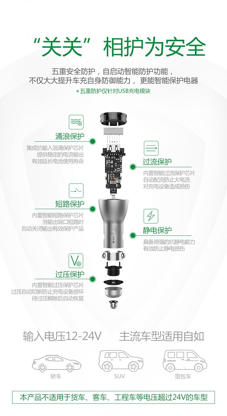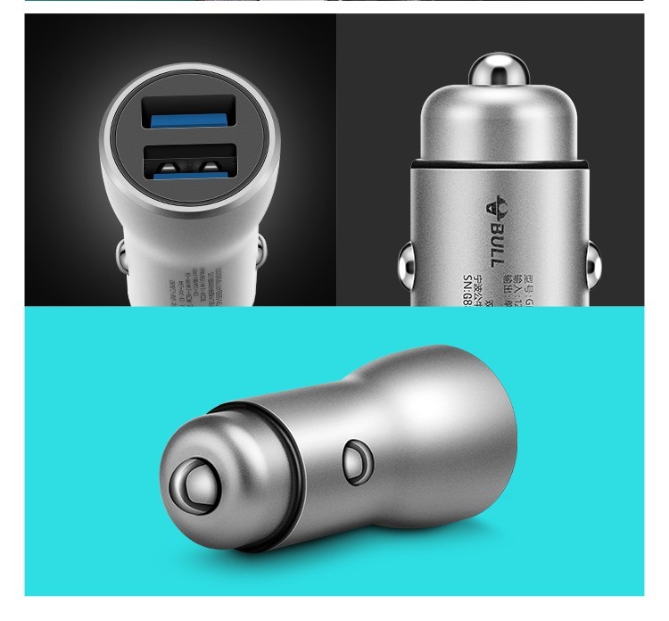 公牛快速充電車充電器自動車シガラタタ-第二電源変換器のプラグを引くと、12 v 24 V車のアップルファーウェイミニ携帯電話の通用車は5 V/3.6 A銀色18 Wを充電して、CUN 180に充電します。