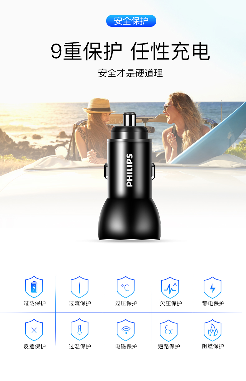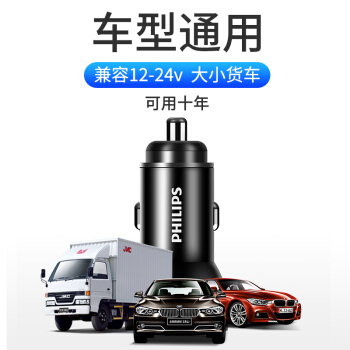 フィリップス(PHILIPS)車載充電器は二重usb 5 A快速充電シガラター自動車充電ヘッド黒(DLPP 526 N)