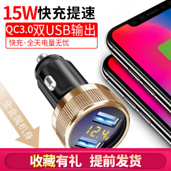 ニューマン(Newmine)車載充電器無線車充電器充電器シーガライタ充電器12 V/24 V車通用自動車充電器車載充電ヘッド【尊貴シャンパンゴールド】QC 3.0レベルアップ金属本体LEDスクリーンがより鮮明になります。