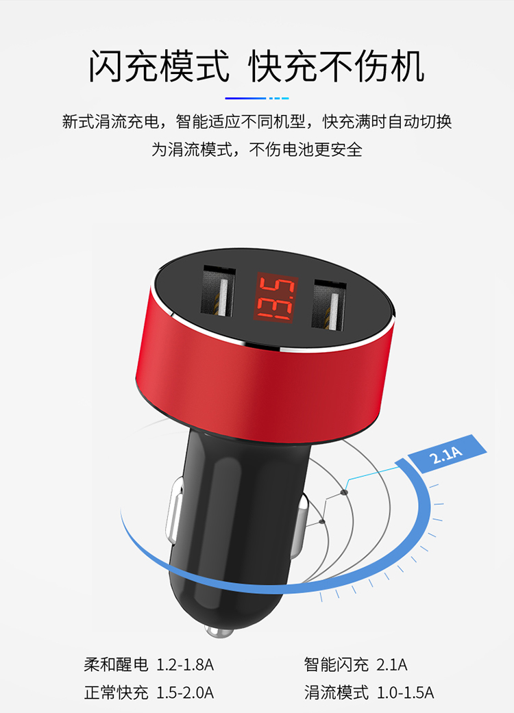 LEEOO楽益車載充電器車充シガラターダブルUSB 1牽引2電圧検出Androidアップル通用数が著しく速いです。0016楕円形車充灰