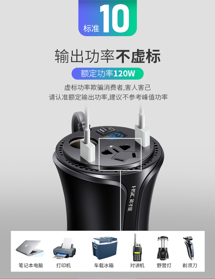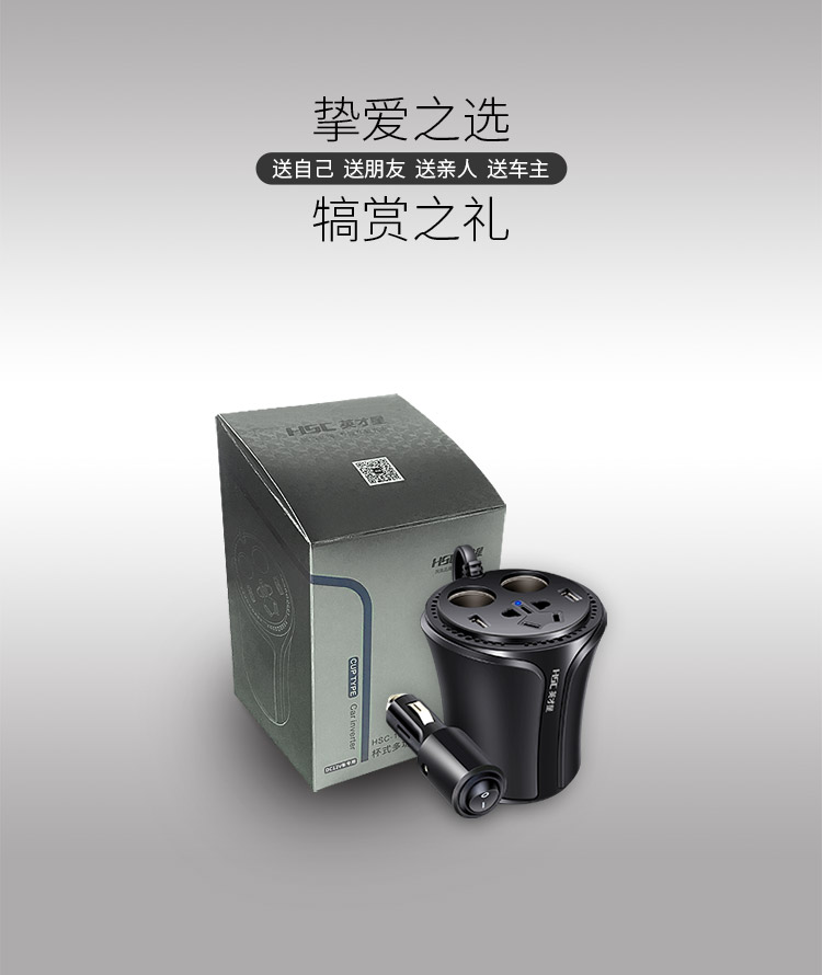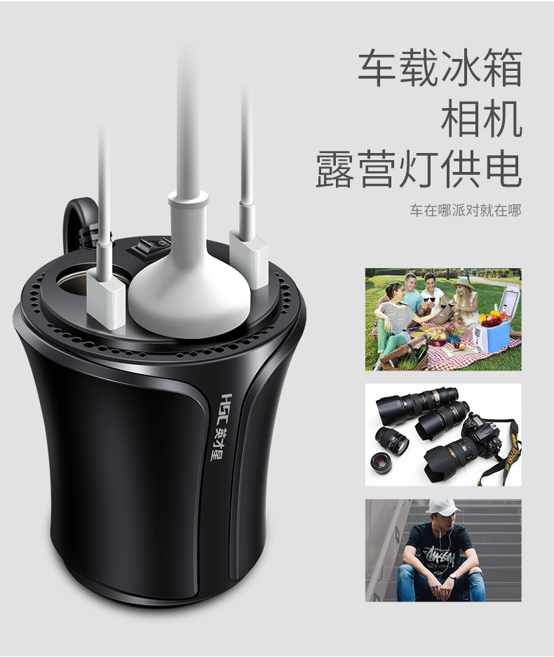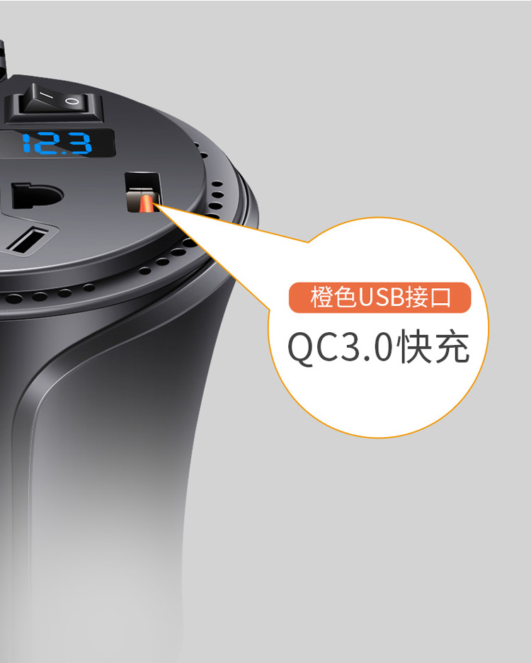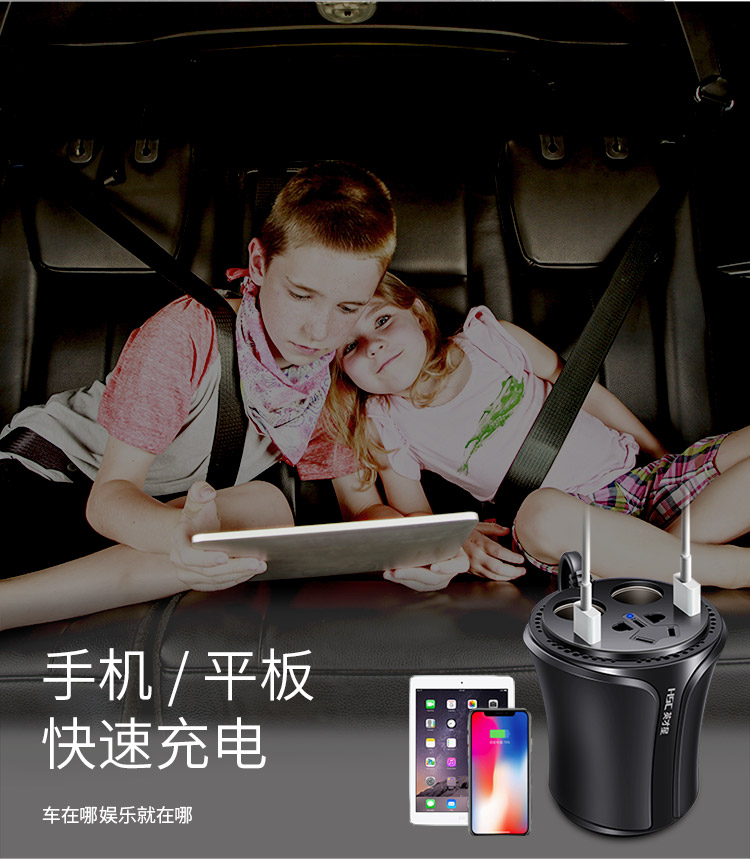 英才星車載インバータ12 v/24 v回転220 Vカップ式充電器快速充電シガラタタ電源変換器12 Vセダンアップグレード版+電圧監視+QC 3.0チャージジ