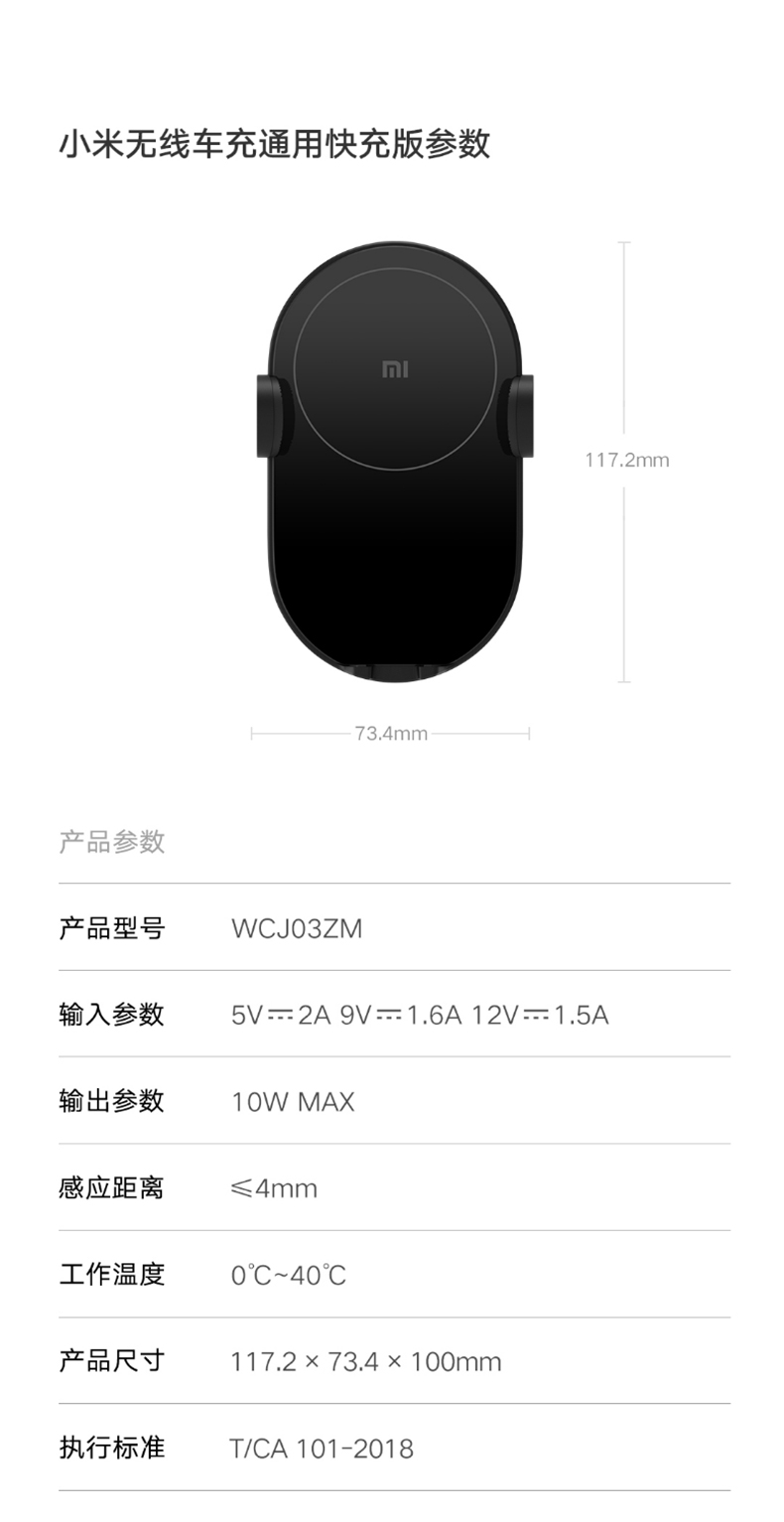 小米(MI)無線車は10 w汎用快充電版の車載無線チャージャー携帯スタンド全自動感知車は小米無線車を充電して通用快充電版10 Wを充電します。
