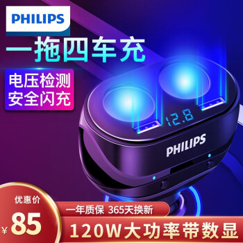 フィリップス車載充電器シガラッタ4.8 Aを快速充電し、ツインUSBソケット電圧監視70 W出力DLPP 521 Nを充電する。