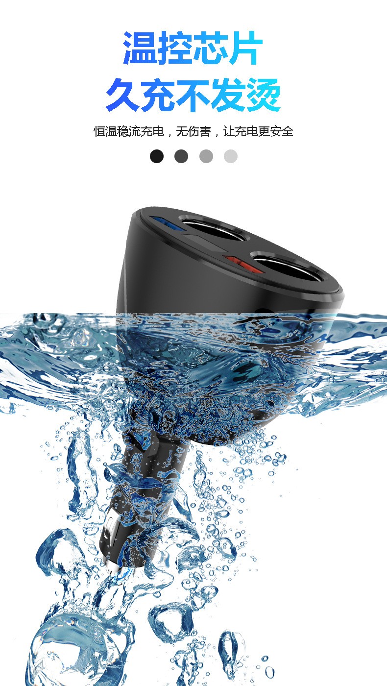 ZOBIG車載充電器は、四電圧監視多機能シガラタタ車充3.1 A快充黒【配一牽引三編みライン】