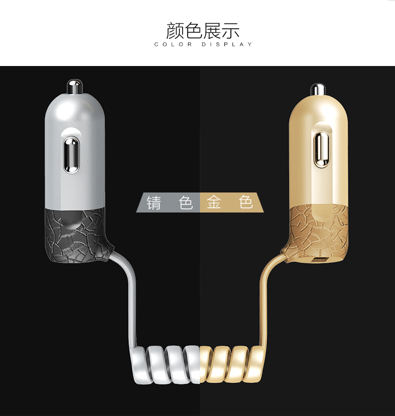 徳登(DURDDEN)*自動車携帯充電器USBベルト伸縮ラインAndroidアップル通用シガラアイタワール牽引2車載充電器ゴールド【2つのデータラインを持参】