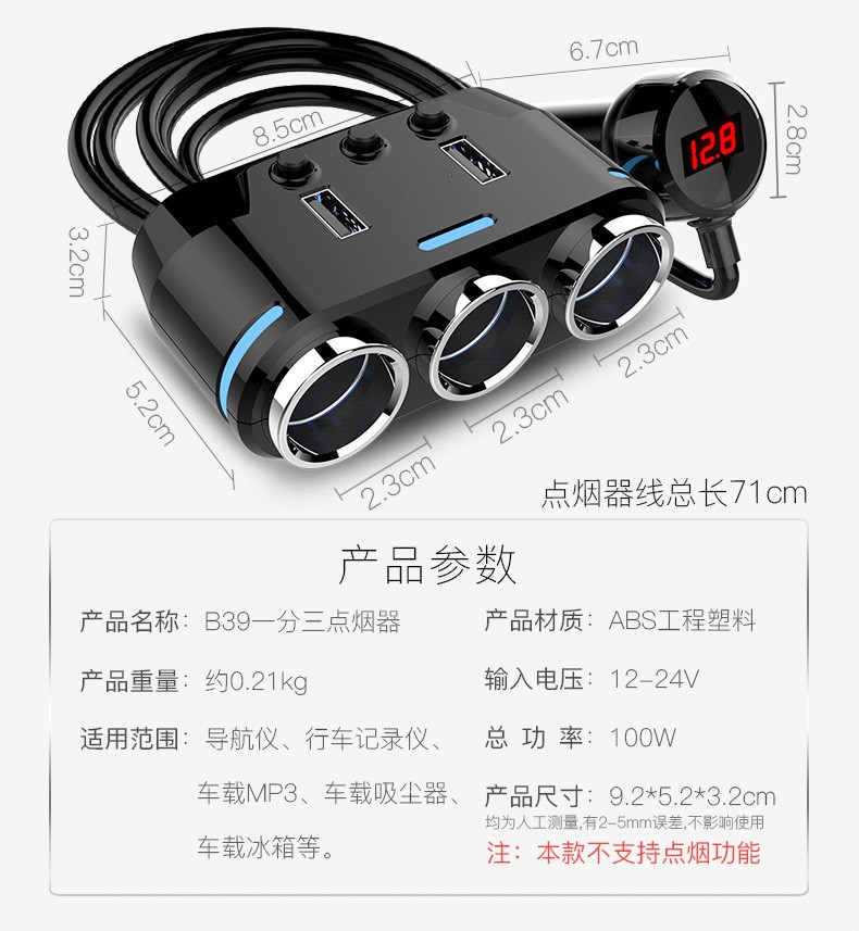 車載シガラッタ電源変換プラグ多機能USBソケット自動車用携帯充電器接続ヘッド大電力無線電圧測定モデル