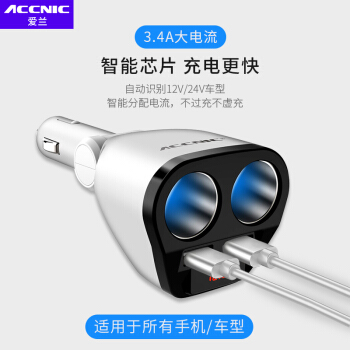 ailan多機能車載充電器二台のUSB自動車シガラタワール型携帯電話を引っ張ると、快速充電単機+三合一線になります。