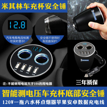 ミシュランMICHELINEシガラター携帯USB車載充電器シガラター引引二電源分配器プラグシガラタタダブルUSB充電器6514 Mベルト安全ハンマー及び電圧監視