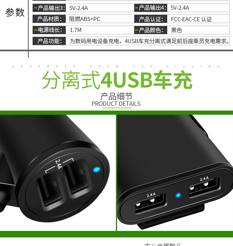 車載前後席の携帯充電器の車は延長線の後列の充電器の通用車で4 usb車を充電して4 usb車を充電します。