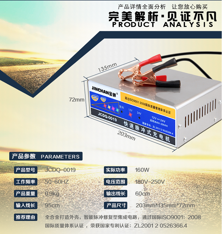 金蝉JCDQ-019全自動知能修復カーバッテリー充電器12 v 24 vバッテリー充電器
