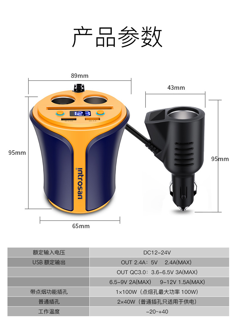 車載充電器自動車シガラタタ変換アダプタ二USB快速充電用多機能車充杯式黄色シガラタタサービス