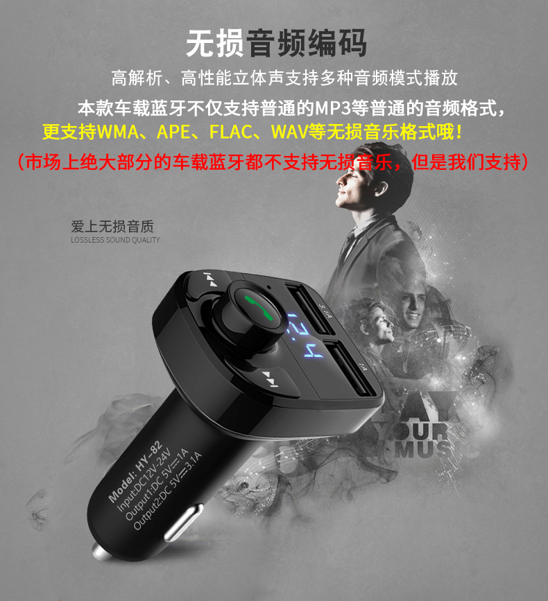 現代(HYUNDAI)車載MP 3車Bluetoothプレーヤー音楽自動車携帯充電器多機能シガラタタ式FM送信機無料通話黒