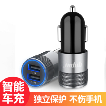 【金属快速充電】自動車車載充電器快速充電器USBシガラタアアップルAndroid携帯タブレット通用【銀黒】ダブルUSBポート