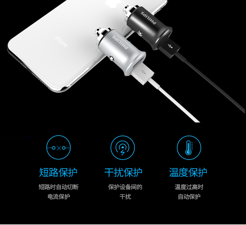 フィリップスの車載充電器の快速充電シガラターは、2つのプラグを引くと、usb携帯電話の電気自動車の車を充電して、新たなアップグレードの快速充電版【加速度80%】【全車種通用】