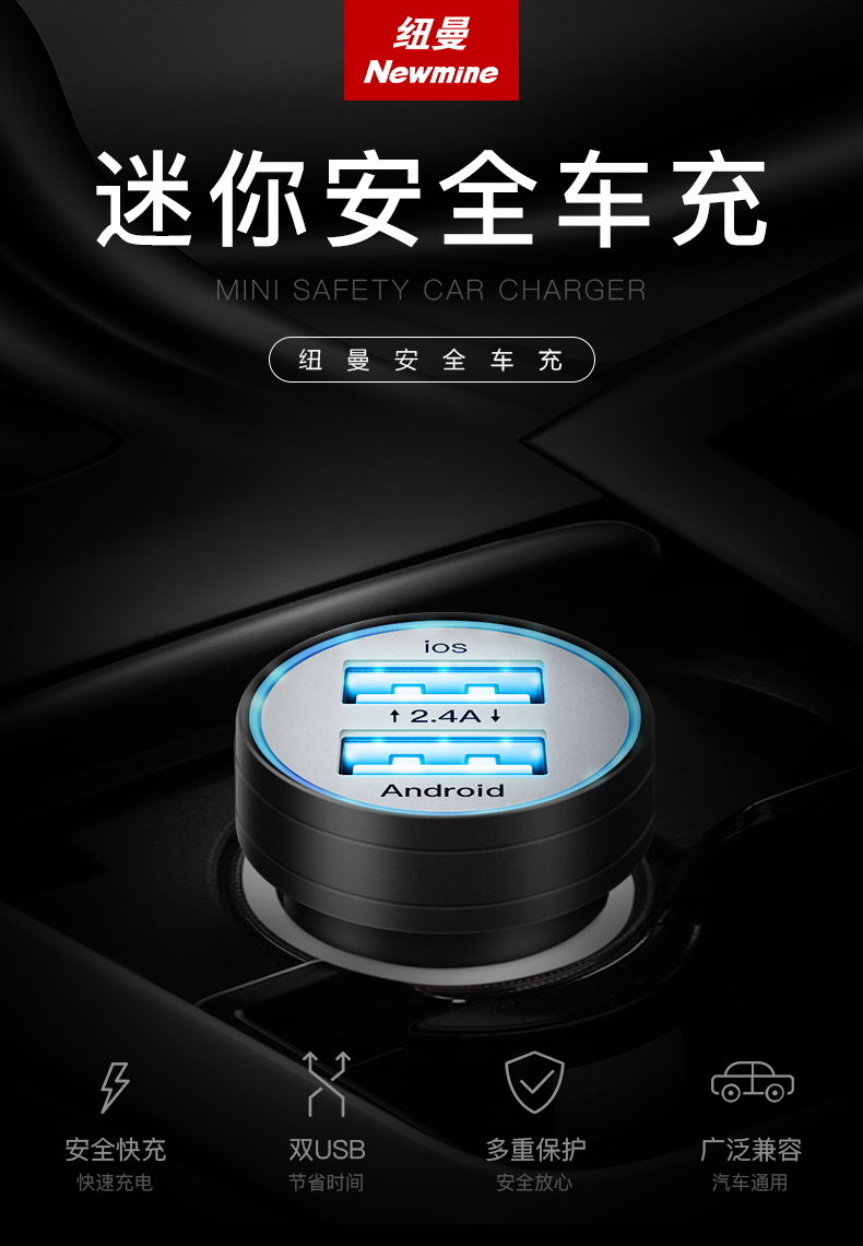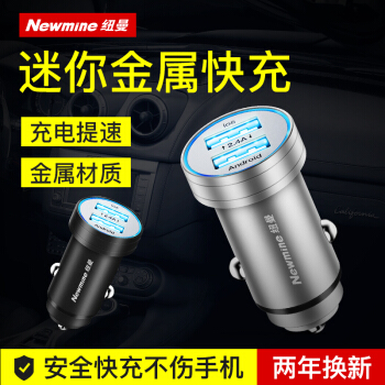 【金属ミニ】ニューマン車載充電器は、二重のUSB車を充電して、二シガラタ式充電ヘッド自動車用携帯電話の電源金属ミニ小車に銀2.4 Aを充電します。