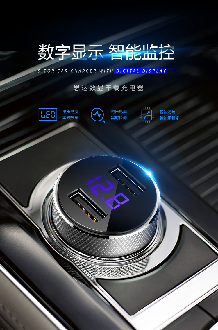 ロック(ROCK)車載充電器車充シガラター5 V/3.4 AダブルUSBケーブル2電圧検出LEDインテリジェントデジタルシスタ-ブルー