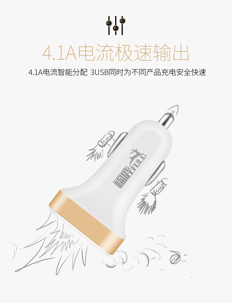 【稲妻快充】福鹿車載充電器ダブルUSB車充一引二シガラタースマートカー携帯充電器3 USBポート4.1 A