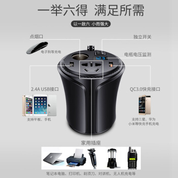 英才星車載充電器自動車インバータ多機能シガラタレットアウトレットアップルファーウェイサムスン速充電アップグレード版インバータQC 3.0チャー+電圧監視宝駿560/730/630/510310