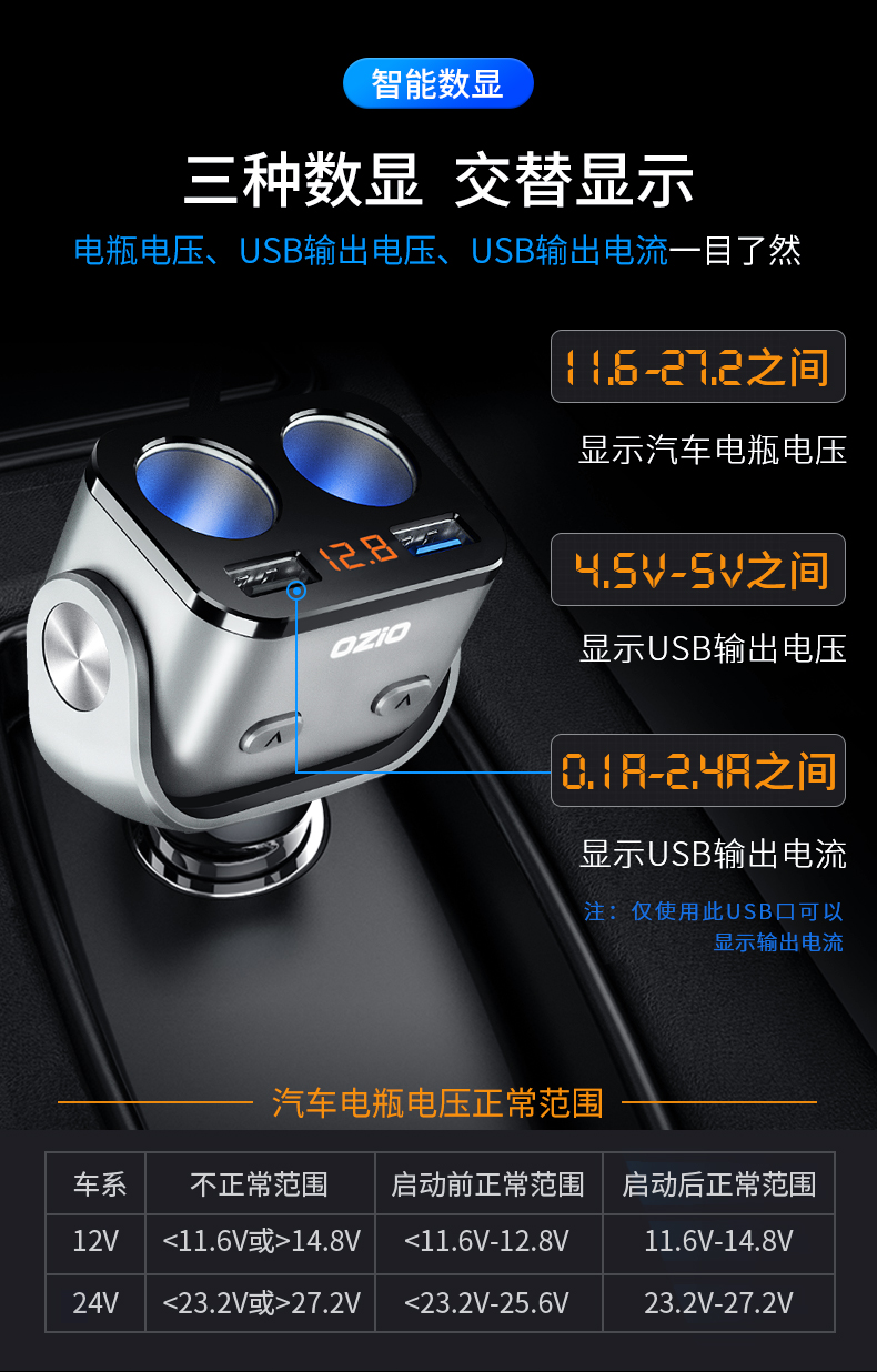 吉利遠景X 6 SUV車シガラター1分3 usb点火器の回転ヘッド車載充電器は三気高い黒フラッシュ充版(布芸安卓快充線送り)を牽引します。