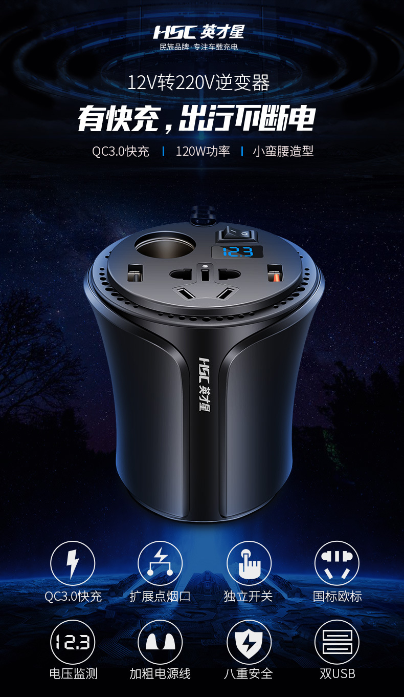 英才星車載12 V回転220 VダブルUSB車充電QC 3.0車載充電器シガラタタ108 E